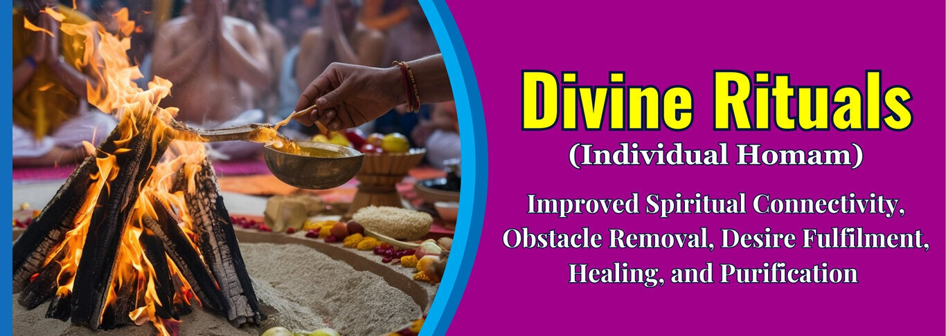 Divine Rituals, an ancient Vedic ritual, is considered sacred in Hinduism's spiritual tapestry. This deeply meaningful fire ceremony serves as a conduit for contacting celestial energy and seeking favours. Homam purifies the surroundings and the minds of participants by chanting mantras precisely and making offerings to the sacred fire, thus establishing a sanctified space for divine presence.