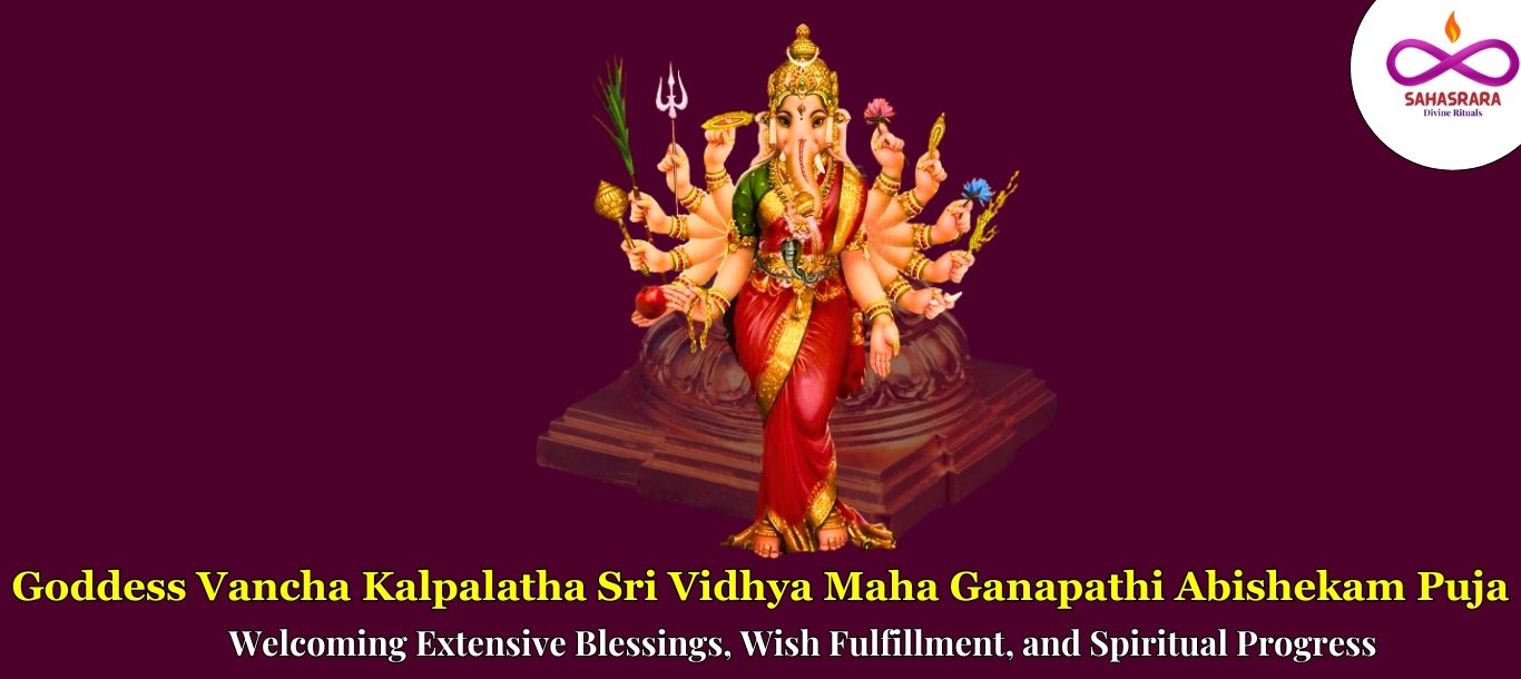 Followers can unite themselves with divine energies by performing the Vancha Kalpalatha Sri Vidya Maha Ganapathi Abhishekam, welcoming extensive blessings, wish fulfillment, and spiritual progress.