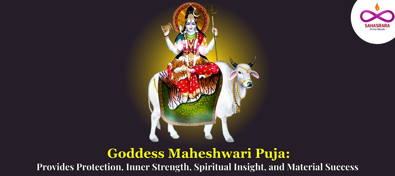 Goddess Maheshwari Puja is a very sacred rite honouring one of Hinduism's Eight celestial mother goddesses (Ashta Matrikas). She is Lord Shiva (Maheshwara)'s Shakti (divine feminine spirit), representing his transformational power. Maheshwari represents strength, knowledge, spiritual discipline, and protection, hence her puja is especially beneficial to devotees seeking inner calm, protection from bad influences, and spiritual upliftment.