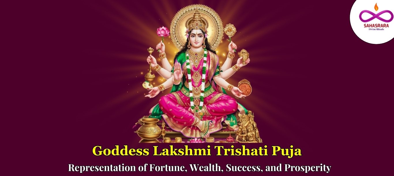 Goddess Lakshmi Trishati Puja is a highly respected spiritual rite honoring Goddess Lakshmi, the embodiment of wealth, prosperity, abundance, and fortune. Trishati is the recitation of 300 names (attributes) of Goddess Lakshmi, each representing a distinct facet of her almighty strength and grace.